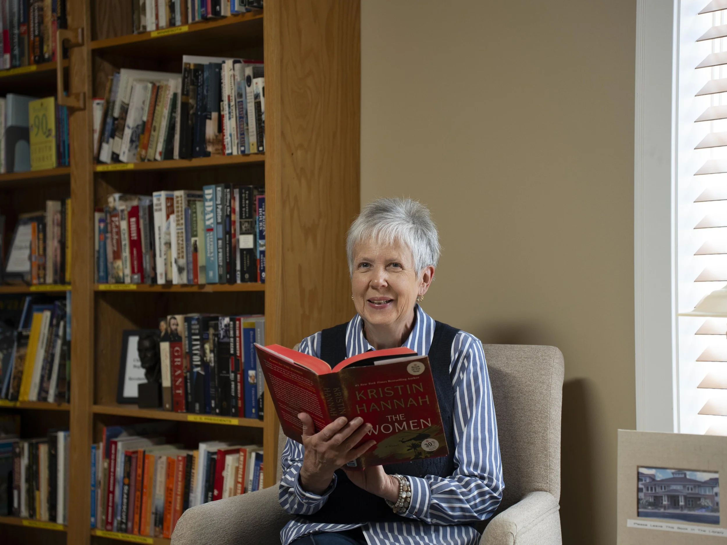 Mary has been a book lover since childhood, when she “played library” with her dolls. She went on to become a school librarian working with high school and elementary students. Now retired, she is the volunteer Greenhouse Village librarian, sharing her love of reading with adults, making new friends and curating a beautiful library space. “I am so proud to be a member of this vibrant community,” she says.